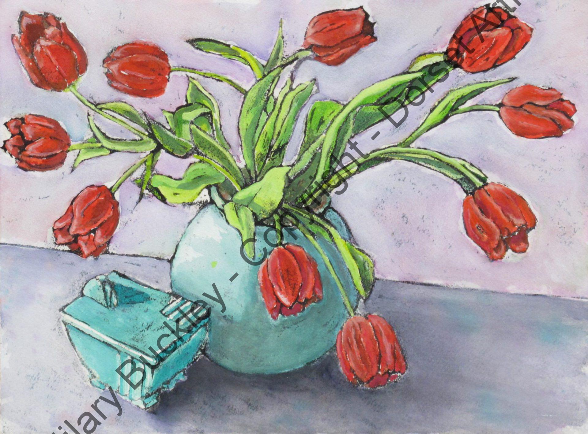Watercolour and ink on paper, mounted in 50cm x 40cm white frame.