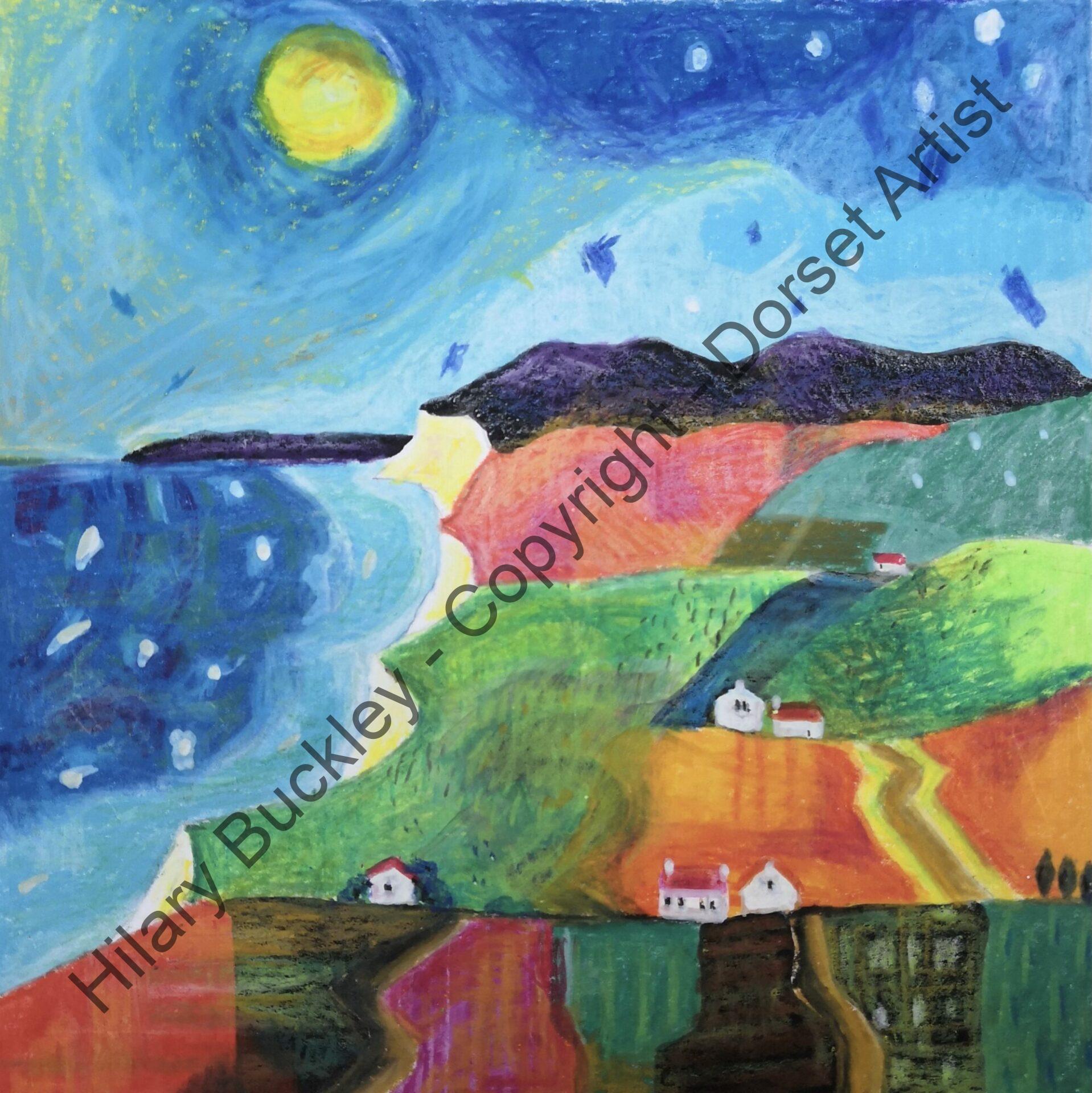 Wax crayon and acrylic ink on paper, approx 20cm x 20cm, in 30cm x 30cm Antique White mount, ready for framing.